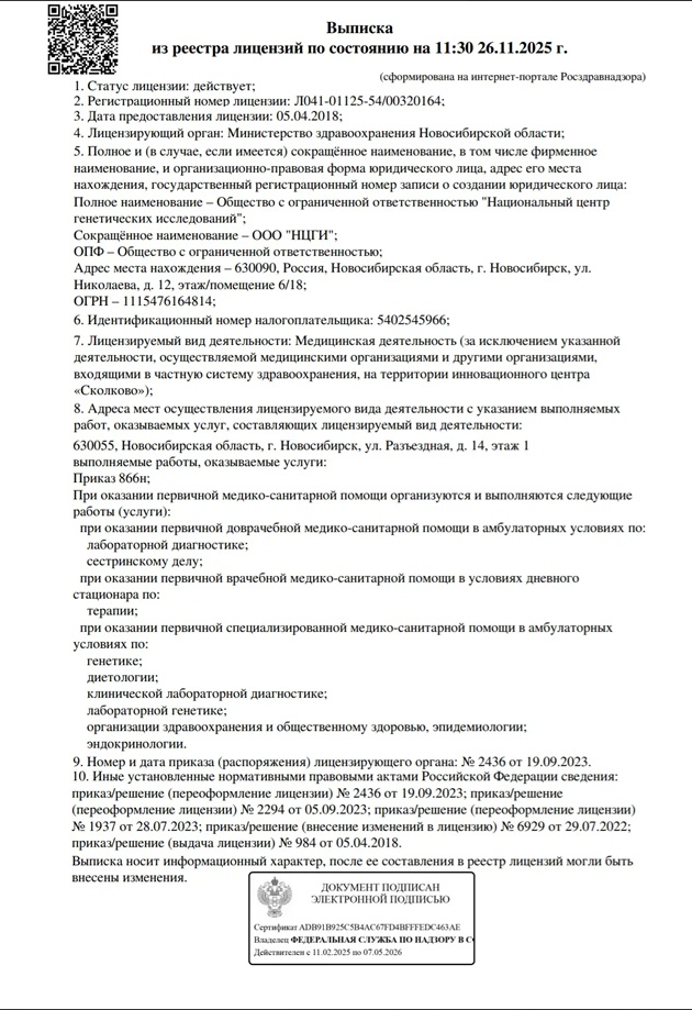 Точность ДНК-теста, который вы можете приобрести в нашем центре «ДТЛ» в Муравленко, крайне высока и достигает 99,99999%, благодаря использованию передовых методов анализа и диагностического оборудования в ДНК-лабораторий-партнёров.