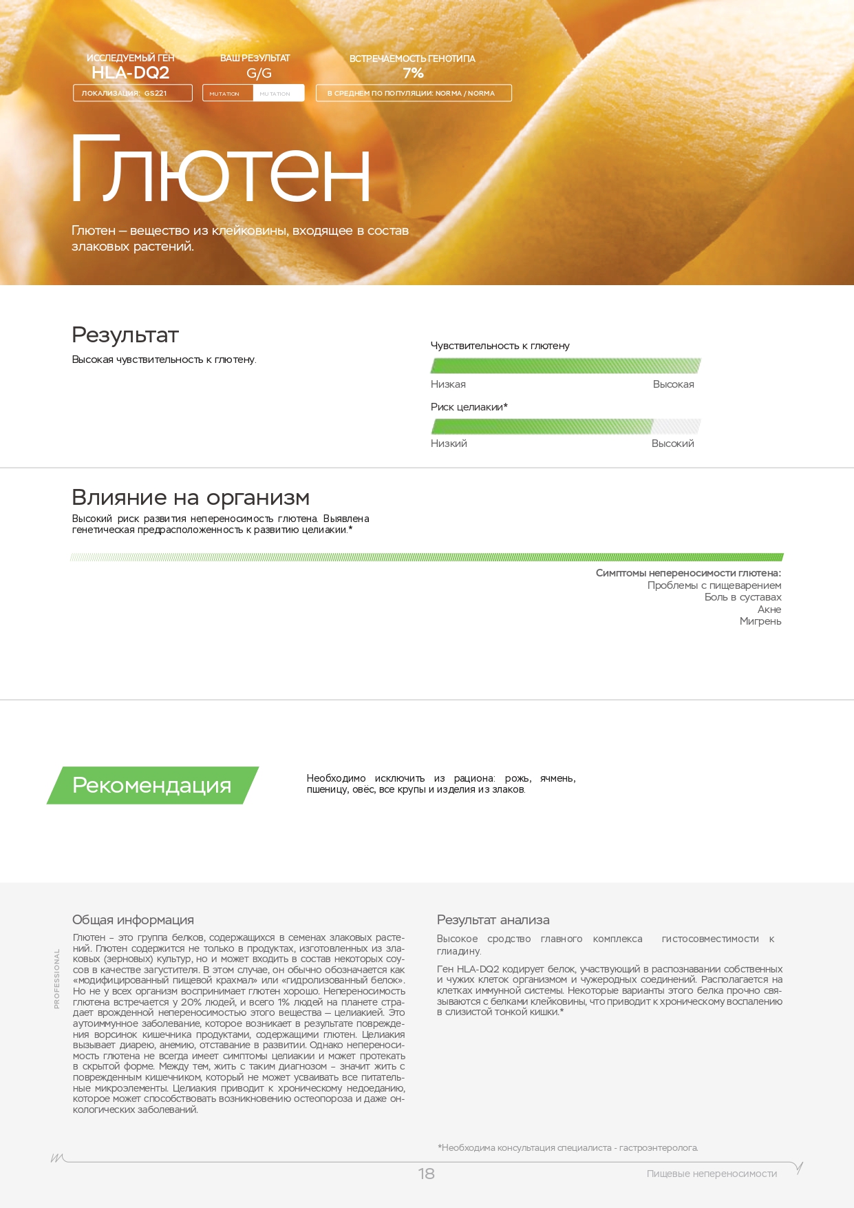 Данная генетическая панель исследования дает возможность узнать о потенциале вашего иммунитета. Провести оценку рисков проявление аллергии и перехода воспаления в хроническую форму. Узнать, насколько сильны первые «линии обороны» организма в борьбе с вирусами, в том числе с COVID-19, и каковы риски легочных осложнений. Знание своих индивидуальных генетических предрасположенностей и возможностей позволяет подготовиться к встрече с возбудителем заболевания, скорректировать свой рацион питания и образ жизни.